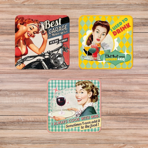 Plongez dans l’univers festif et nostalgique des cocktail bars années 50 avec ces dessous de verre rétros aussi pratiques qu’hilarants. Commandez dès maintenant et recevez rapidement votre accessoire vintage pour transformer votre bar en véritable lounge rétro américain !